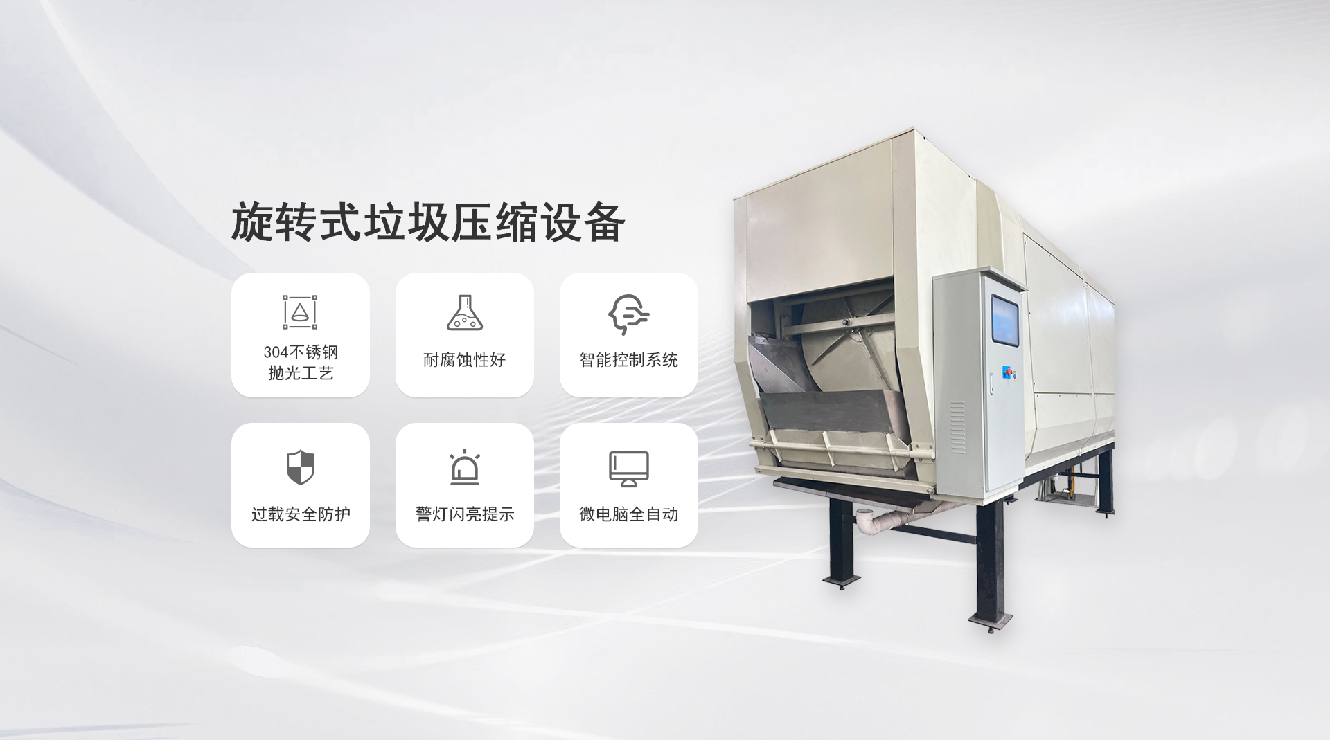 工作原理:滾筒螺旋葉片旋轉(zhuǎn)壓縮儲存。滾筒和葉片采用SUS304不銹鋼板制造,耐腐蝕性好。當(dāng)垃圾進入滾筒內(nèi),滾筒旋轉(zhuǎn),在螺旋葉片作用下壓縮垃圾...